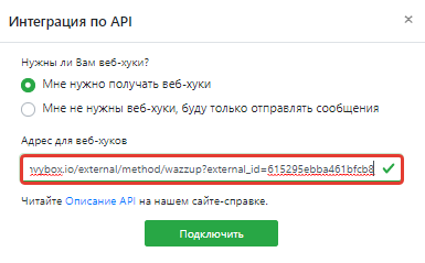 Заполните поле ввода адреса для веб-хуков. Ссылка — в аккаунте EnvyCRM.
