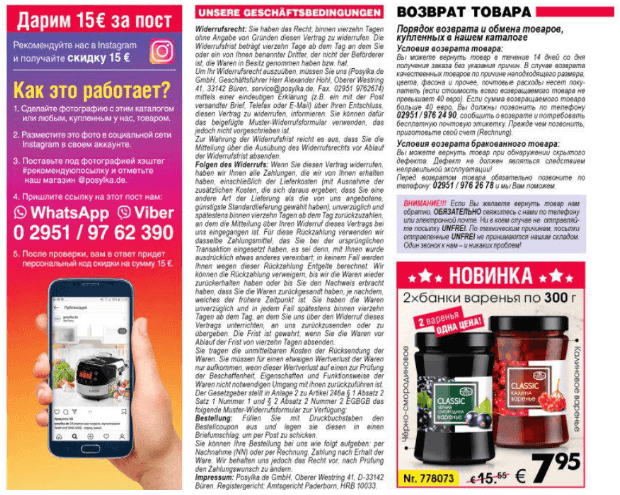 Кроме сервиса, мы стали принимать от клиентов заказы через WhatsApp. Мы рассылаем 870 000 каталогов в год по всей нашей клиентской базе, люди выбирают что хотят купить, вырезают купон заказа, заполняют его и отправляют нам. Раньше они отправляли его по обычной почте (да, Германия очень традиционная страна), сейчас мы их просим прислать фото купона в WhatsApp. Это экономит нам 2 дня, а клиентам упрощает процесс заказа.
