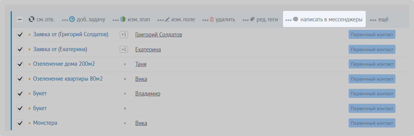 2. Выберите сделки, контактам из которых нужно отправить сообщение.