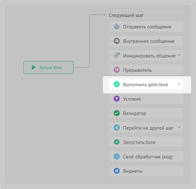 На этом шаге мы делаем так, чтобы после ответа клиента бот выполнял действие, которое нам нужно. Например, переводил сделку на другой этап или создавал задачу менеджеру.