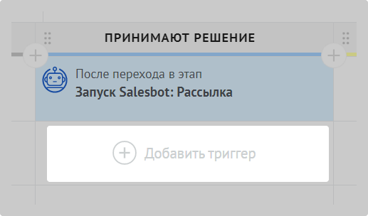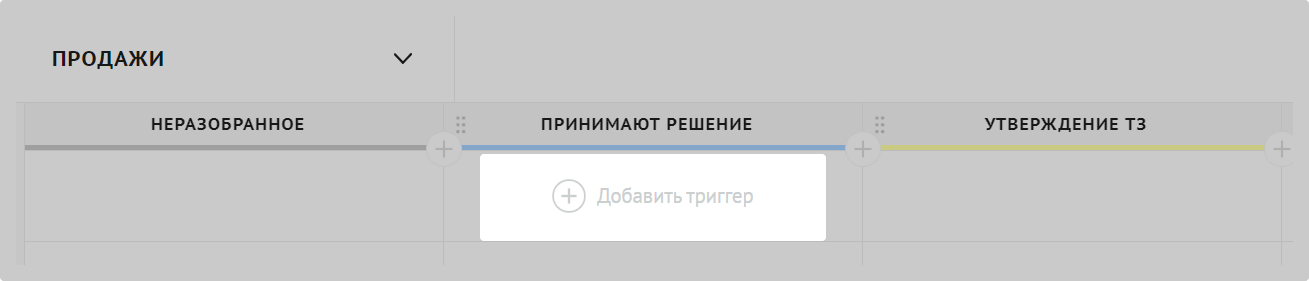 2. Нажмите на пустую ячейку под тем этапом, на котором хотите делать рассылку — так создадим триггер.