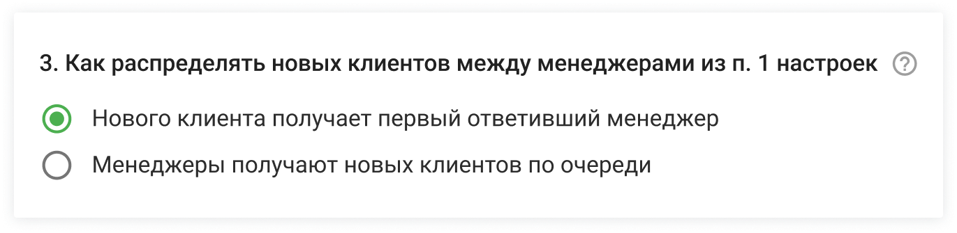 Выбор алгоритма распределения обращений от новых клиентов В интерфейсе Wazzup есть настройка, которая позволяет установить, как обращения от новых клиентов будут распределяться между пользователями.