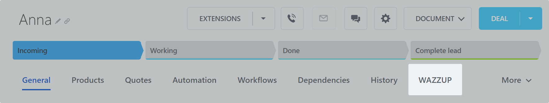2. Нажмите на кнопку Wazzup на верхней панели меню.