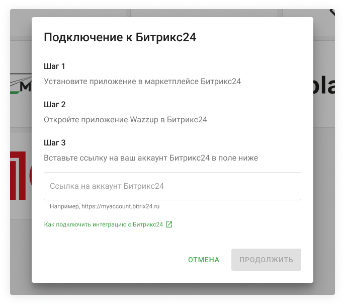 2. Чтобы подключить Wazzup к Битрикс24, выполните шаги 1–5, описанные выше в этой статье.
