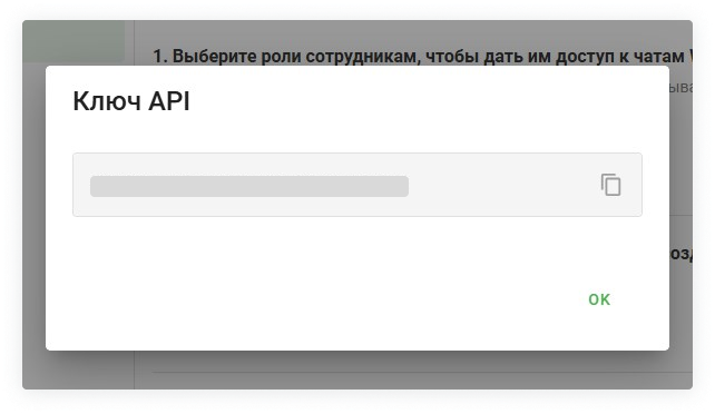 3. Откроется окно с ключом API. Этот ключ нужно скопировать и использовать в вашей CRM.