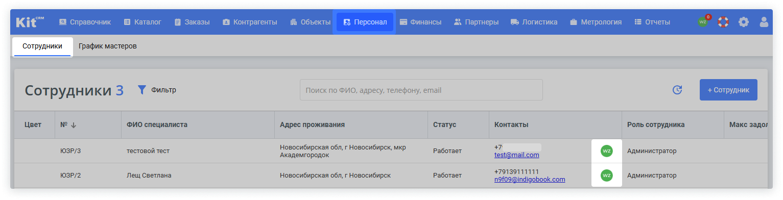 Кроме того, можно общаться с персоналом через чаты Wazzup в KitCRM.