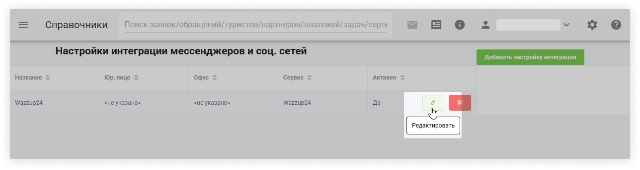 4. В открывшемся окне появится раздел настройки интеграции. Чтобы внести изменения, нажмите «Редактирование» (значок карандаша).