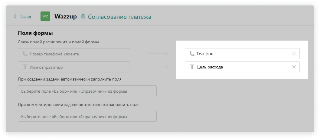 1. Перейдите в «Настройки». Сопоставьте поля формы: