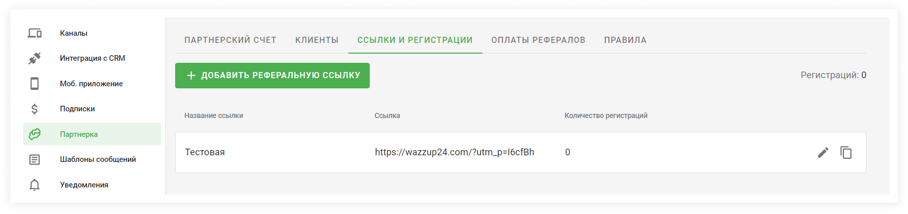 Вы можете создавать ссылки и отслеживать регистрации во вкладке «Ссылки и регистрации».