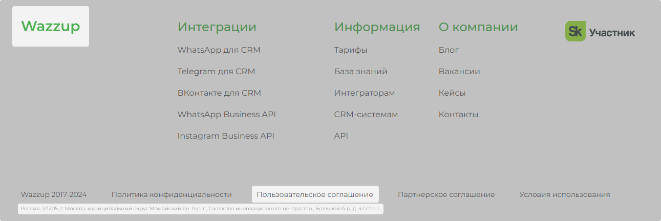 Также сайт должен быть на домене второго уровня. Например, в ссылке https://wazzup24.ru/ доменом первого уровня является хвостик «ru», а доменом второго уровня — «wazzup24». Такая ссылка подойдет.