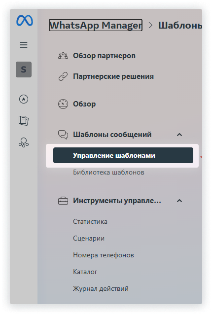 2. Откройте вкладку «Шаблоны сообщение» → «Управление шаблонами».