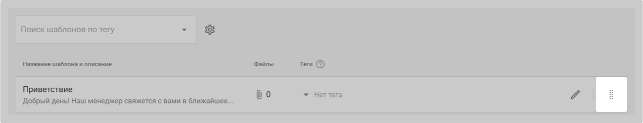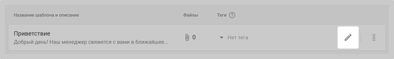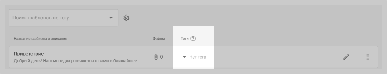 Уже готовым шаблонам можно присвоить теги прямо в списке шаблонов — в колонке «Теги».